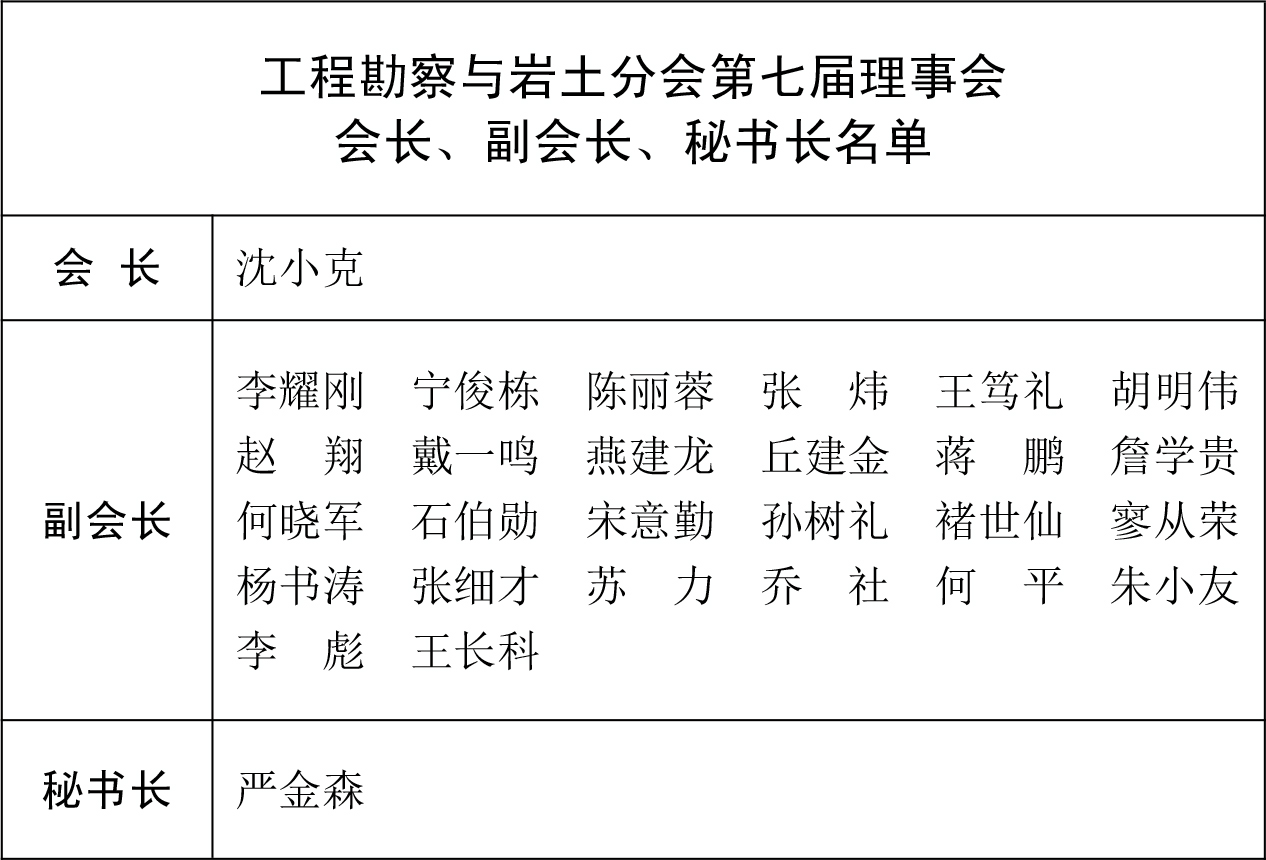 日前,中国勘察设计协会工程勘察与岩土分会第七届会员代表大会暨七届一次理事会在武汉召开。会议选举产生了勘察与岩土分会第七届理事会会长、副会长、秘书长,中国勘察设计协会副理事长、北京市勘察设计研究院有限公司董事长兼党委书记沈小克任会长,建设综合勘察研究设计院有限公司总经理李耀刚、中国五洲工程设计集团有限公司副总经理宁俊栋等26人任副会长,中兵勘察设计研究院原院长严金森任秘书长。